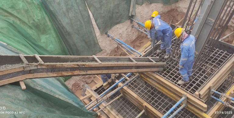 Mazoon Engineering Contracting and Development Company is a leading specialist in power transmission foundation civil works, template setting, foundation construction, precise topographic surveying, Construction of access roads in challenging terrains, benching and leveling, and wadi protection works. Trusted for delivering excellence across challenging terrains, we provide end-to-end solutions including tower foundation execution, infrastructure preparation, and site development with a strong focus on quality, safety, and timely delivery.